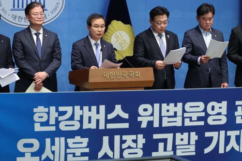 민주 국토위, '한강버스' 오세훈 고발…서울시 "법·절차 준수"국회 국토교통위원회 소속 더불어민주당 의원들은 서울시의 한강버스 사업 추진 과정에서 서울도시주택공사(SH)에 재정적 부담을 끼쳤다는 이유로 오세훈 서울시장을 배임 혐의로 고발할 예정이라고 밝혔습니다.위원들은 오늘(26일) 국회에서