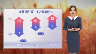 [날씨] 내일 전국 초겨울 추위…중부·경북 한파주의보휴일인 오늘 흐린 날씨가 이어졌습니다.하늘에 구름이 잔뜩 낀 가운데, 서해안은 내일 이른 새벽까지 5mm 미만의 비가 살짝 지나겠습니다.내일 내륙 하늘 대체로 맑겠는데요. 밤사이 강력한 한기가 밀려오겠습니다.중부와 경북으로는 올가
